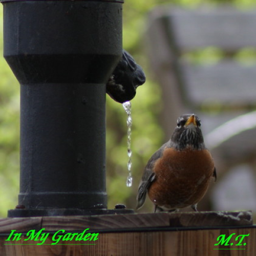 Robin refreshing him self with water in our back yard befor he go's back to his courting song !