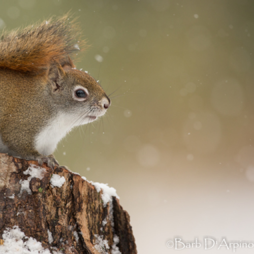 Eleanor the Eastern Chipmunk emerging in the spring from her burrow to the sight of snow. Only in Canada :)