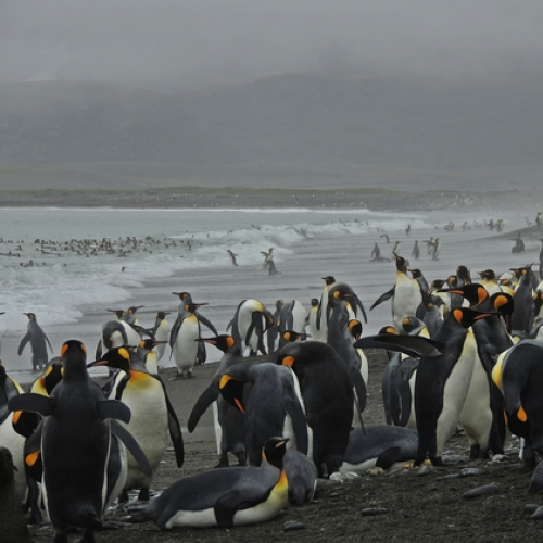 King Penguins in the surf at Salisbury Plain, Island of South Georgia, February 2014. Nikon P510 4.3-180mm 1/400sec at f4.6 ISO100