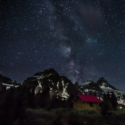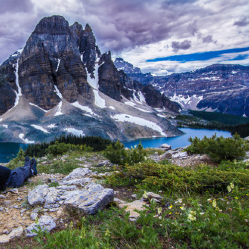 The view of Mount Assiniboine from Assiniboine Lodge, in the Alberta Rockies