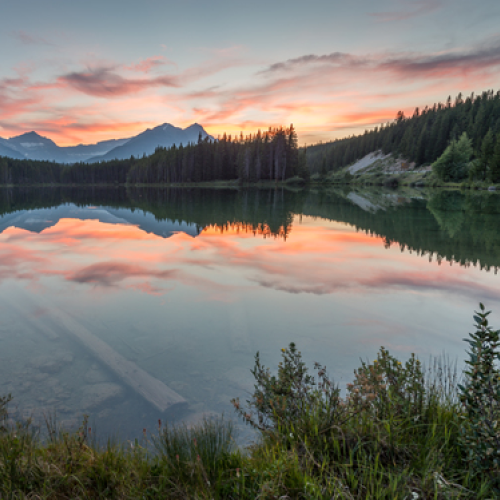 A beautiful sunset from Herbert Lake along the Icefields Parkway in Banff National Park.
