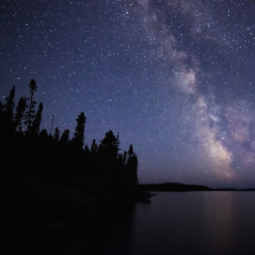 In true form under our Canadian skies in the Cree territory the auroras danced along the trees. The light on the water was created by a trapper checking his nightlines. To me it was a moment that captured where I live and the beauty of the land that we are part of.