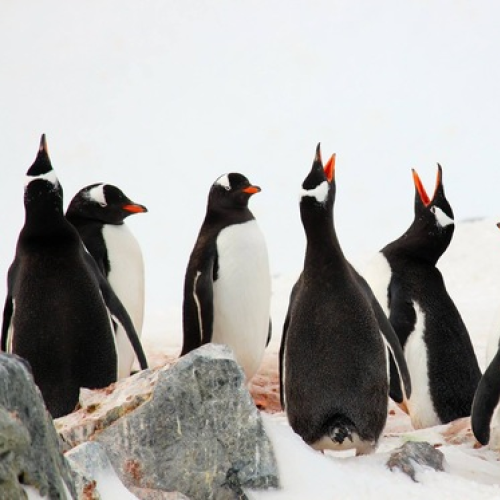 Gentoo penguins at the beginning of mating season on Cuverville Island
