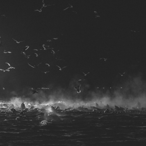 Sea lions and the food and bait herring fishery off Qualicum beach last December in British columbia