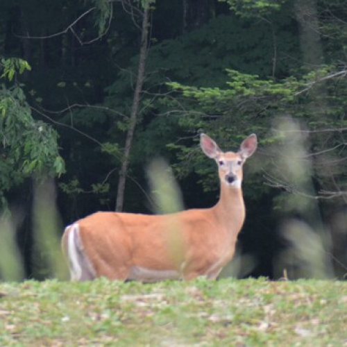 Our blue heeler and golden retriever enjoying a run in the forest.