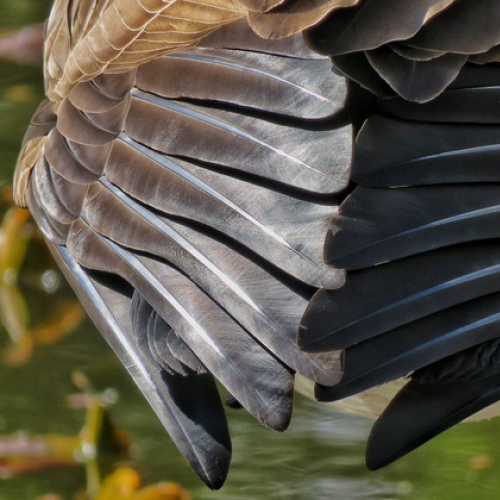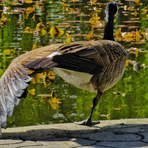 A male Canada Goose stretches a wing