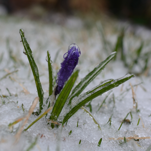 ice covered crokus after ice rain