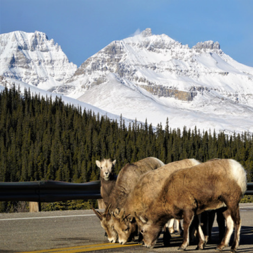 These Rocky Mountain sheep were slowing other road users down by hanging-out in the middle of the road licking the salt. Photo taken in Banff National Park somewhere between Jasper & Calgary on a recent road trip.