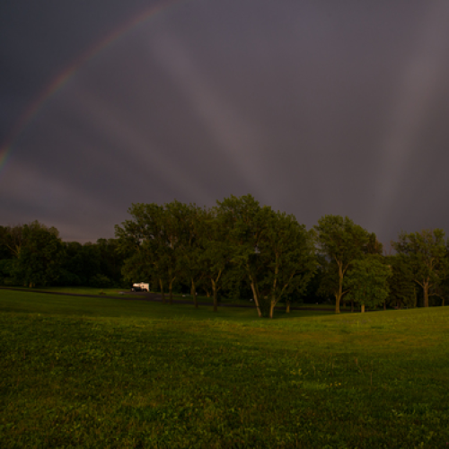 Rain clouds moving past Kingston Ontario over the Martello Towers