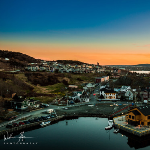 The sky fills with colour as the sun sets over the City of St. John's and Quidi Vidi Village.