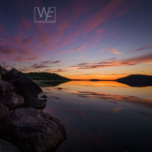 During the summer the sun sets Northwest behind the hill of downtown St. John's creating beautiful colours above the city