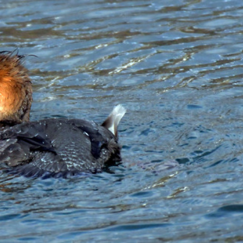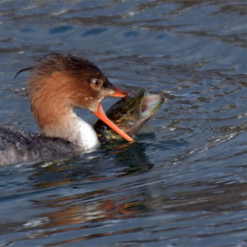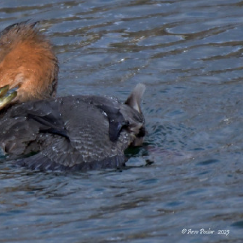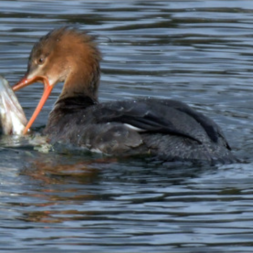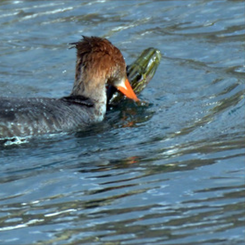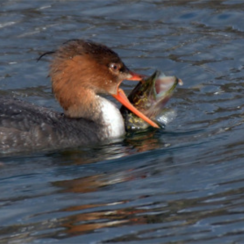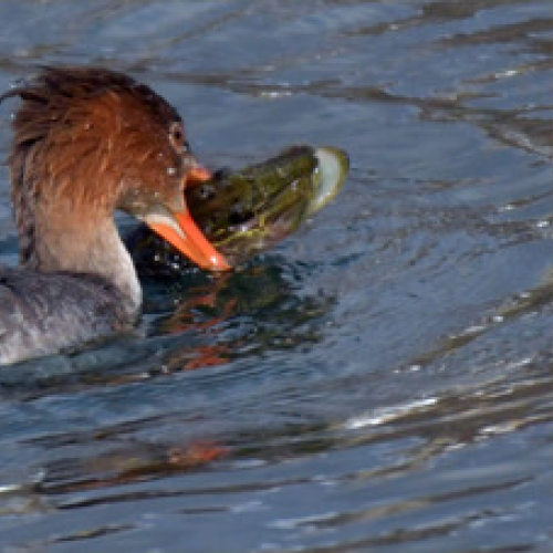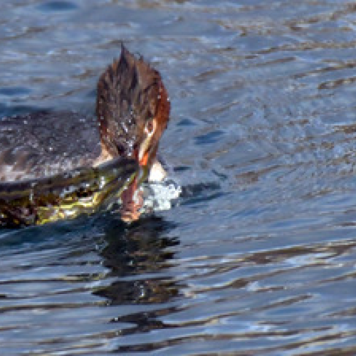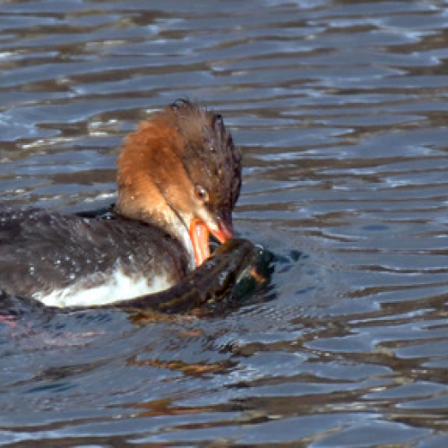 Flew down and caught a Vole below the snows and grasses he waits for it to stop struggling before taking it back up to a tree
