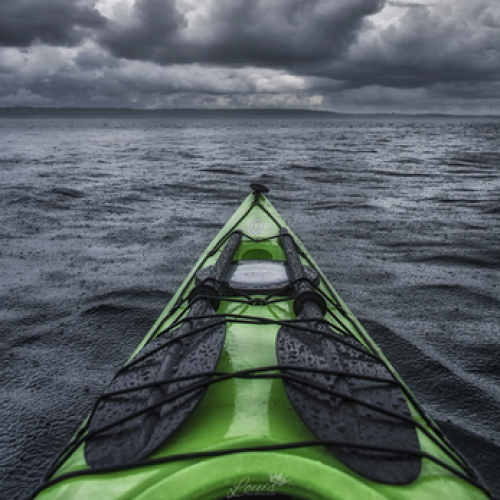 Caught in a brief shower kayaking on Kempenfelt Bay