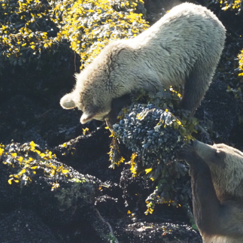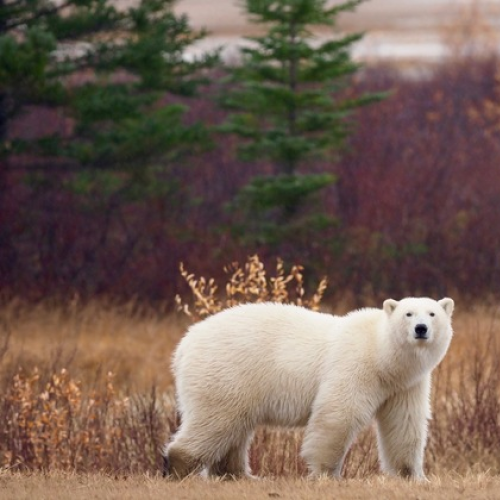 We walked along the frozen shoreline of the Hudson Bay when we noticed this snowy owl flying over us. She first flew away, but then came back to land on one of her favorite spots to look for lemmings.