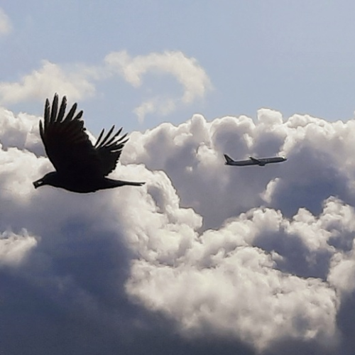 Actually I was taking a picture of the airplane over the clouds and a bird crossed over