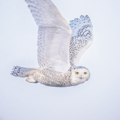 I have been trying to photograph a Snowy Owl since I learned it visits Ontario every winter. I saw and photographed snowies. However, they were too far to shoot with a 500mm. And then this happened last week. It was perched on an electric pole next to a road in Wolfe Island. I wish I could take an eye-level shot. Anyway, I'm glad I got to see one up close.