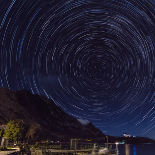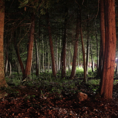 Balsam Lake Provincial Park, no light at the campsite, only one light bulb from a nearby bathroom + and dying fire behind the camera 4 minutes of exposure