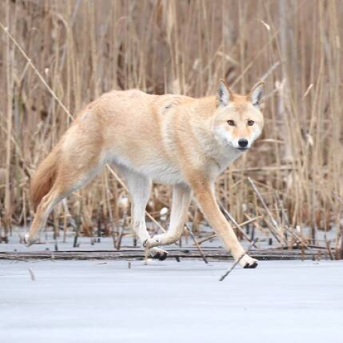 This was an incredible day of hiking when I got lucky seeing a pack of 7 coyotes. This blonde coyote emerged out of the reeds like a spirit.