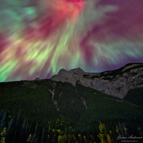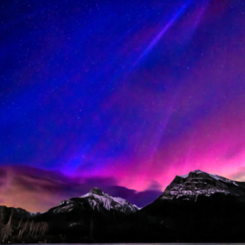 An awesome solar storm on May10/11 2024 created some of the best and most colorful aurora that could be seen world wide and into the lower southern states as far as Florida. The strength of the solar storm was rated as KP9 and G5, the highest ratings for a solar storm. This aurora had some nice pinkish and red colors. This image was taken at Gap Lake Alberta with Mount Lougheed as the prominent peak.