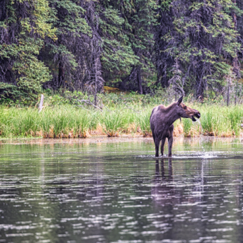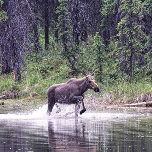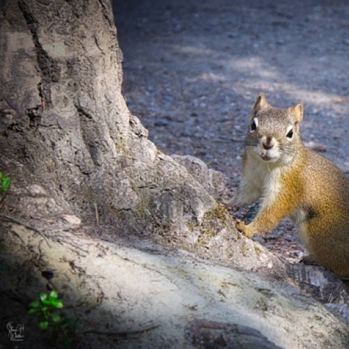 This a cute little guy from our trip to Alaska. And did you know the red squirrel (Tamiasciurus hudsonicus) makes itself quite conspicuous with its lively habits and noisy chatter. Cone cuttings on stumps or rocks are common and tracks in snow are numerous where this squirrel occurs. It can be found in spruce forests over most of Alaska and has a wide range in North America. It occupies a wide variety of forest habitat, occurring in the hardwood forests of eastern North America and the coniferous forests of the west and north.
