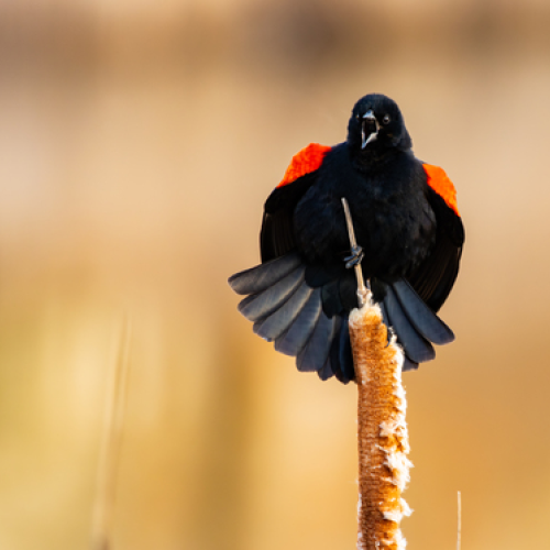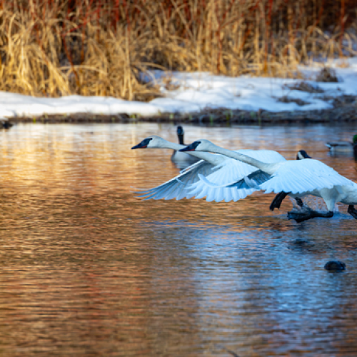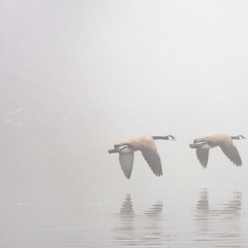 Being familiar with this spot, I had a good idea in which direction the geese would take off. Despite low light I was able to freeze this pair in flight.