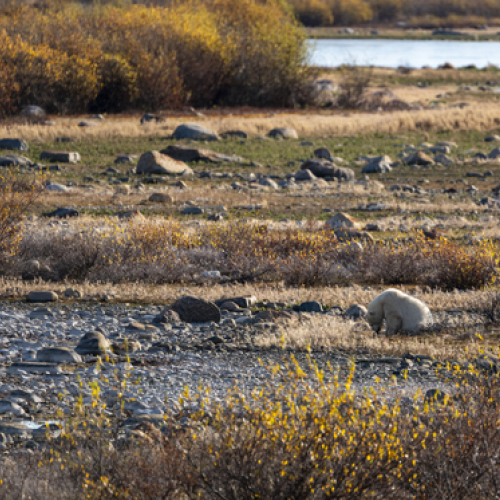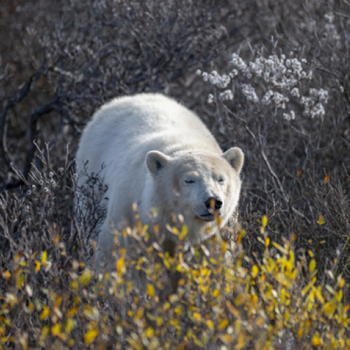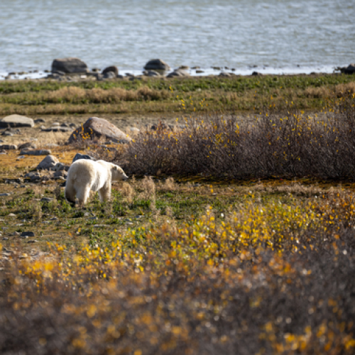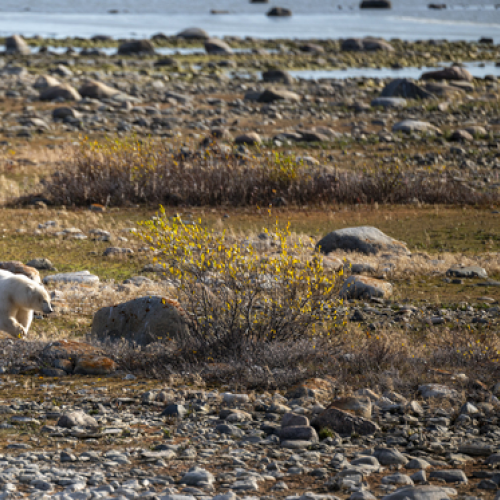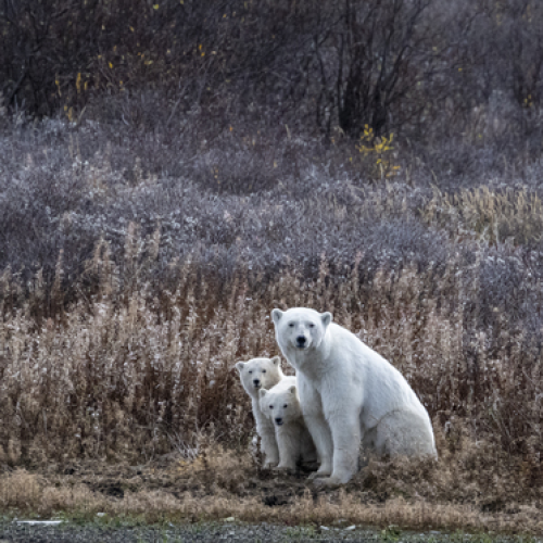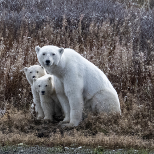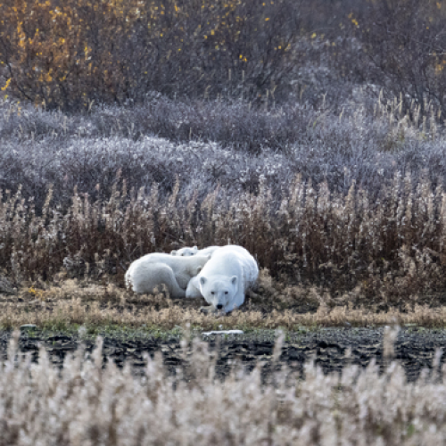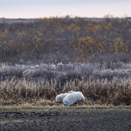The Hudson Bay lowlands and surrounding area is so flat and vast you can see storms roll in from ages away. These polar bears were hunkered down in the kelp on the beach and the scene was set.