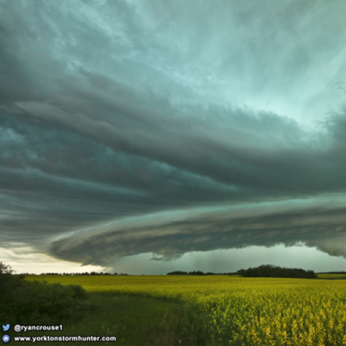July 6, 2025 Severe Warned Storm between Assiniboia & Bengough SK Canada Thick, Colorful & Girthy storm structure at Willow Bunch!!! This was a tough day to forecast and a LONG driving day haha! (13.5 hours from leaving my home to arriving back at 2 am the next day) I was seeing 2 main storms systems. 1. around the Gravelbourg region as it moves it way East and intensifies (for a time) 2. a long line of storms (perhaps part will be both severe and non-severe) crossing from Alberta into SK from basically Frontier (SW) all the way to Unity (and perhaps even more North). The 1st system was my main interest for the start as models suggested it would makes it way East roughly between Regina, Rouleau, Weyburn. As this storm eventually weakens, the 2nd system could split in the region South of Moose Jaw as it moves SE. There was also Capping issues with this system that "could" prevent initiation or perhaps weaken the system. My target for the potential 1st line of storms was Avonlea. I got my gas and waited for a few radar runs. From there seen the 1st line of storms begin to form, but the cap was winning as they were all weak. I decided to go after the big system coming in from the Alberta border making it's way slowly East. I ventured off towards Galilee and then down HWY 36 through Crane Valley and then decided to keep going, so made my way to Assiniboia. Topped off my gas as I could see the long Squall Line like beast approaching! It was starting to look quite nice so found a road just to the West of town with the Richardson Pioneer plant (which made for a great foreground), and there I sat and watched it arrive with it's structural beauty. From there I played Cat & Mouse with the storm. That means, blast East to out of the rain, pull over, take a few pics, and blast East to get back out of the rain, rinse and repeat. From there made my way to Verwood where I was seeing some rotation on radar via Velocity. I Core Punched the storm to get to the South side and make my way to Willow Bunch. From there I "attempted" to find a way to the storm between Bengough and Minto (to my SE) as it was starting to show a lot of rotation! Along the way between Willow Bunch and Harptree, and now on the back side of the whole storm system, 1st witnessed an intense and beautiful bright rainbow followed by some Thick, Colorful & Girthy storm structure!!! From there, continued on towards Bengough on a poorly chosen road which was VERY waterlogged, slippery and squishy and almost nailed a deer! The road was just too much, and after slipping and sliding at 50 kms, I called it quits! Fun Chase Day!