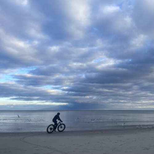 Lake Ontario, urban beach. Every dozen or so waves became high plumes as they crashed the pier.