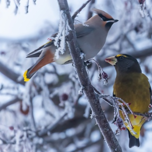 animal bird finch jay branch bohemian_waxwing cedar_waxwing twig vertebrate beak wing