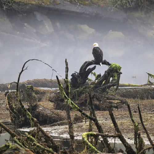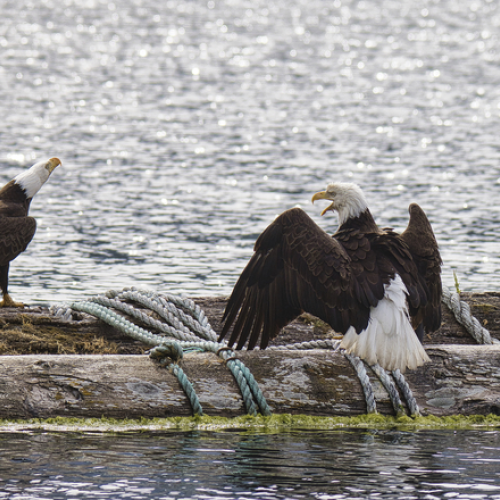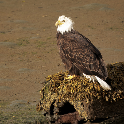 Looks like this bald eagle just about had enough of playing catch me if can. The mink in this log kept its distance when the eagle attempted to make it its lunch.