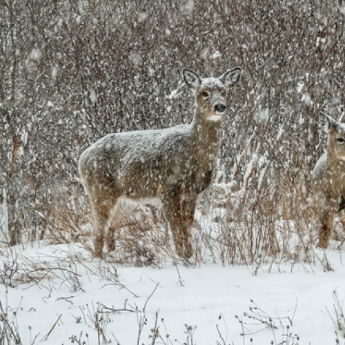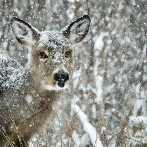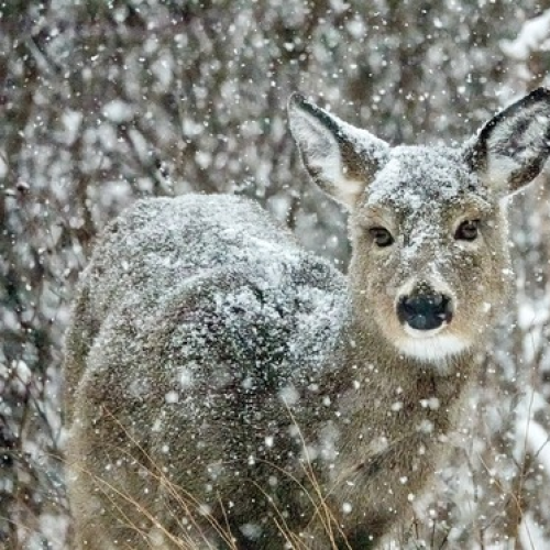 deer snow winter wildlife animal mammal outdoors nature kangaroo terrestrial_animal frost snout freezing grey