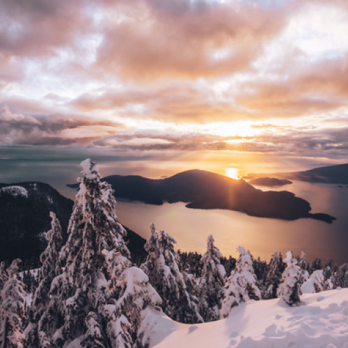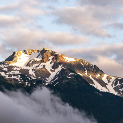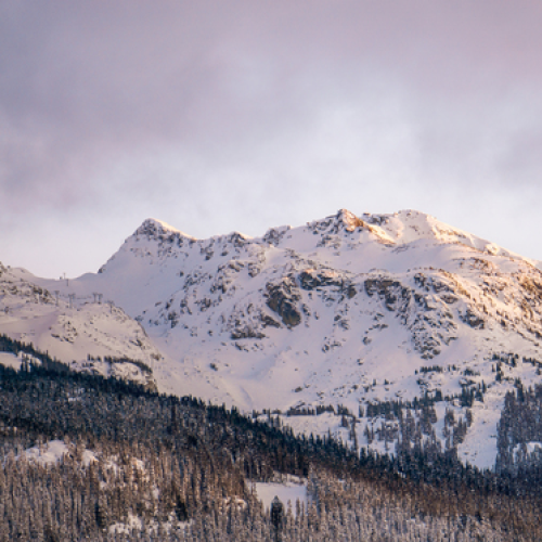 A moody sky over Whistler Mountain with a fading lilac sunset.