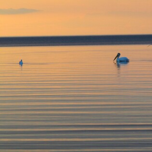 At the edge of the water at dusk, Lake Winnipeg