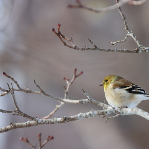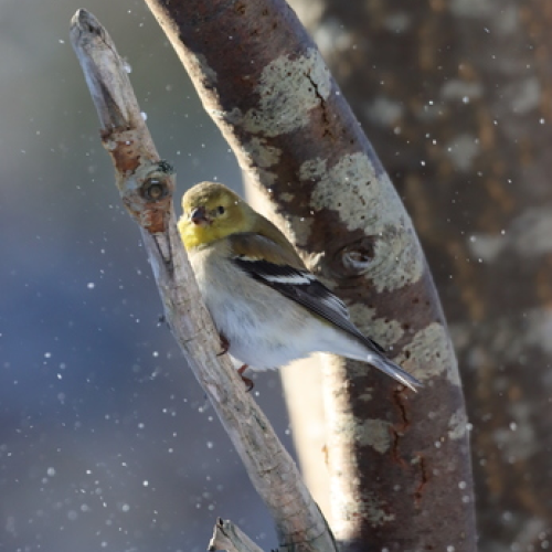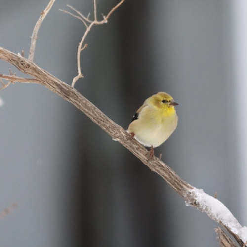 newfoundland canada conception bay south bird wildlife goldfinch american winter plumage snow photography animal finch yellow twig beak