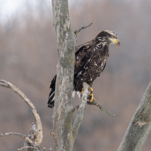 A Juvenile Bald Eagle on a snowy day