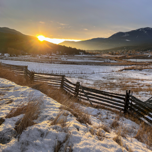 nature outdoors scenery sky landscape flare light mountainous_landforms winter mountain fence split-rail_fence hill horizon snow cloud