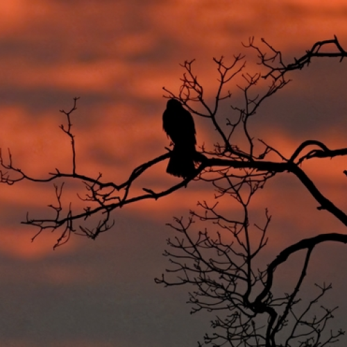 A Northern Harrier perched at dawn waiting for the sunrise and another day of hunting on the Cowichan River Estuary.
