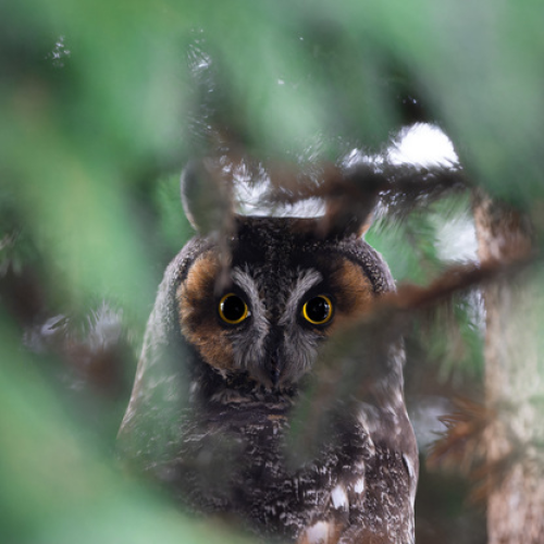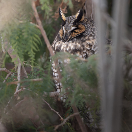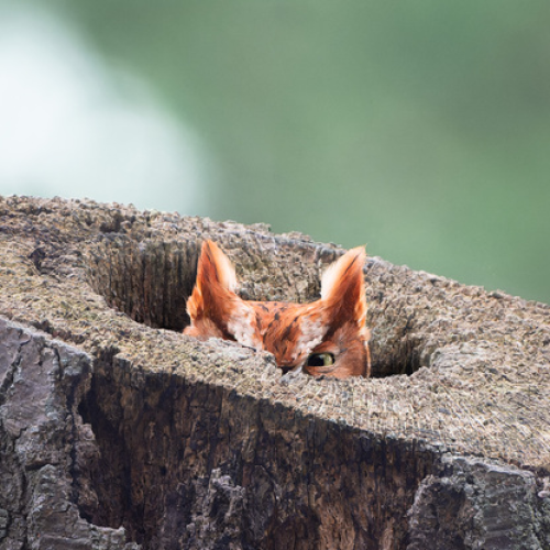 With the help of a good friend, I found this fiery little screech owl peeking out from a blunt-cut tree. I love all screech owls, but there’s something magical about the vibrant orange of this one. It took a while for him to emerge, but as dusk settled, he finally appeared, one eye watching the world with quiet curiosity. Protecting habitats like these is crucial; screech owls rely on mature trees and hidden cavities, and conserving these spaces ensures these small but mighty raptors continue to thrive.