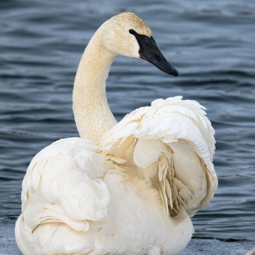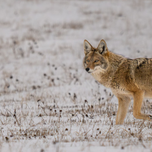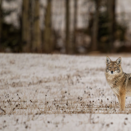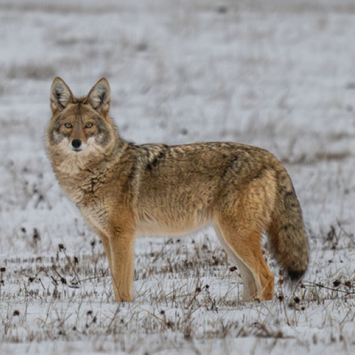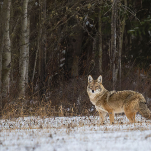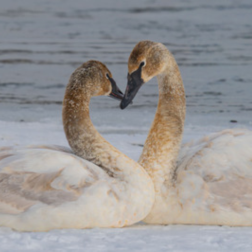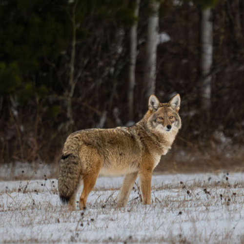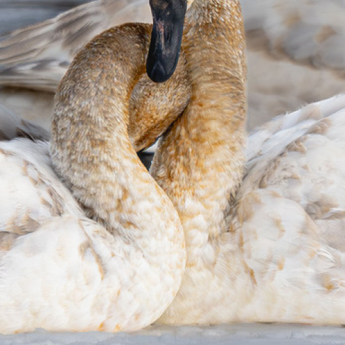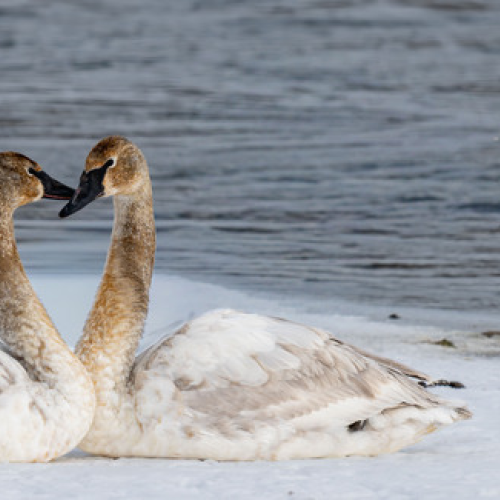 I stopped to grab a photo of this Snowshoe Hare expecting it to 'high-tail' out of sight. Instead, it leaped off the snowbank, sent me a raspberry, then ran at top speed down the road right at me! I thought for sure it was going to run smack into me! It streaked by me missing me by a foot and gave me a cute back-side view.