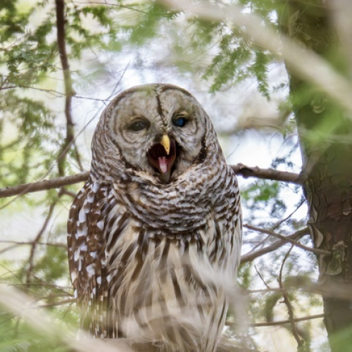 I was lucky to capture some photos of this barred owl yawning. Still adjusting to the time change? 3/1/2026 Lower Sackville, N.S.