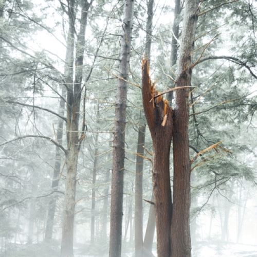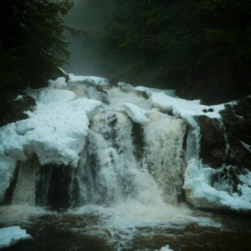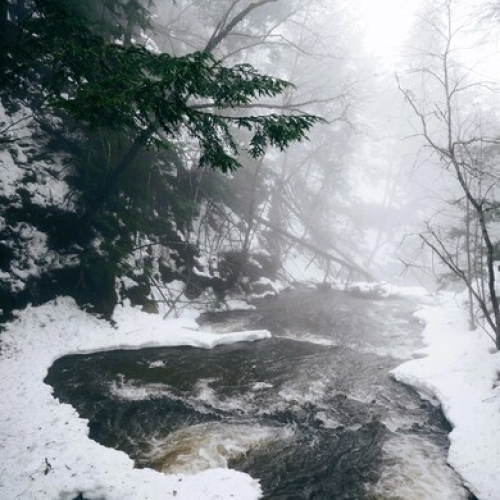 The mist from moving water on (hopefully) our last winter storm for the year.