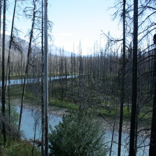 Panoramic shot of Post Hotel in the Lake Louise Townsite Area. Inside Banff National Park. This is taken across the creek from the hotel near the Lake Louise Visitors centre.
